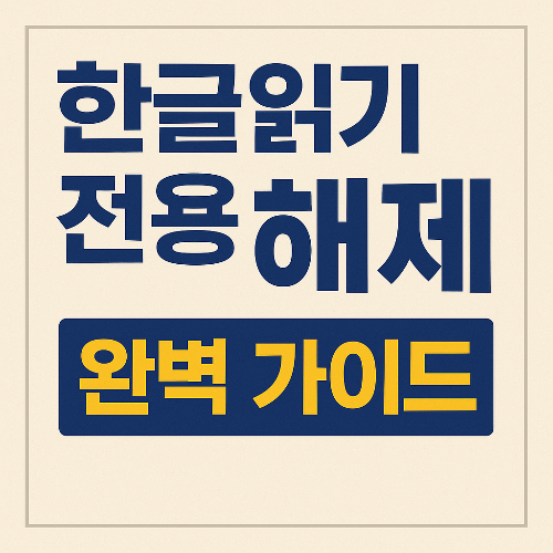 파일 속성 외에도 한글 프로그램 내부 설정으로 읽기 전용을 해제할 수 있습니다.